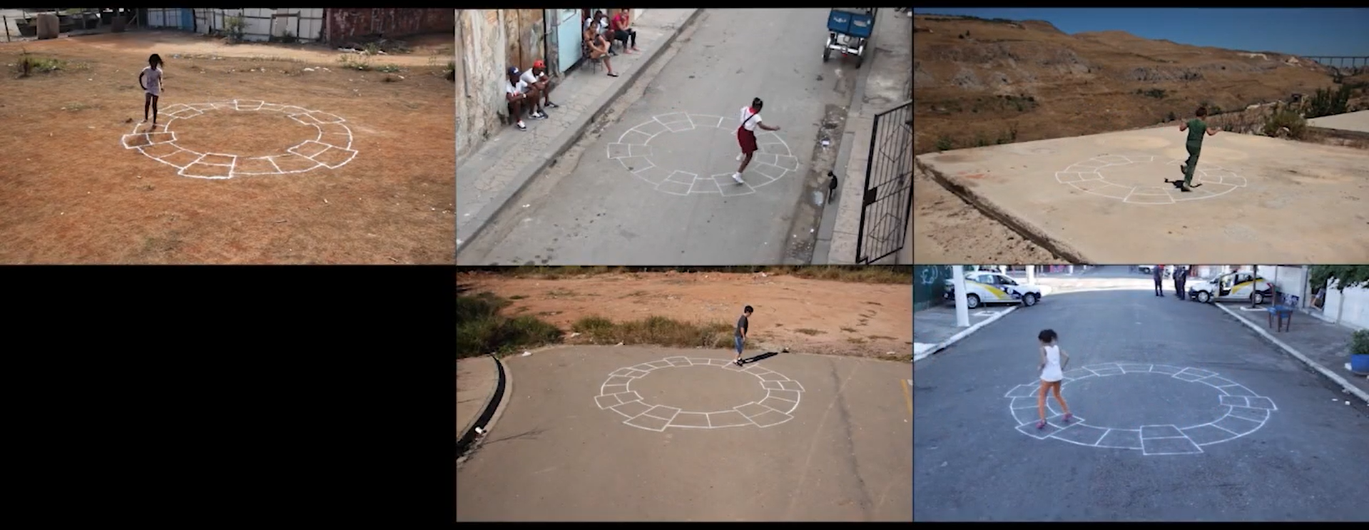 The choice of this game is due to the fact that it is a popular and universal game that transcends borders, a recreational activity practiced by children from the most diverse types of societies in countries of all continents. The game may vary in name and format from country to country. This playful game was used as an instrument in an artistic program that I made to help social projects in refugee camps or places of extreme vulnerability and violence in different countries, such as Cuba, Syria, Venezuela, Angola and Brazil .