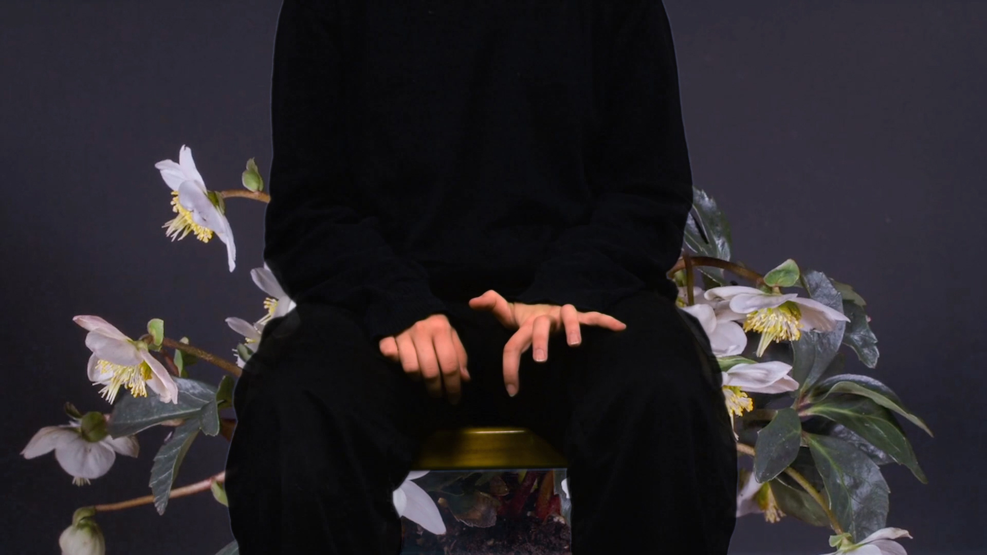 Una boca que intenta hablar sin ser escuchada y una multitud caminando en la oscuridad. Ese mutismo involuntario es trasladado hacia una masa informe recreando vísceras (en realidad son medias y el relleno). Un objeto que incita una sensación de nausea y que la autora usa como alegoría de la simplificación de la persona cuando ya no se siente persona. Una chica aparece sentada y aislada del entorno, recortada ante un falso fondo con una planta que se va marchitando. Sus manos sufren puntuales espasmos. Todo lleva a reflejar ese cansancio de cuerpo y mente que hace poner a la persona en automático para soportar el dolor. «Se trata de esa enfermedad gris a la que se refería Jean Paul Sartre en La náusea, que hacía que sintiese su cuerpo con un dolor sordo y monótono». A través de él se replantea su fragilidad desde una situación anímica extenuada en la que nada conserva su sentido.