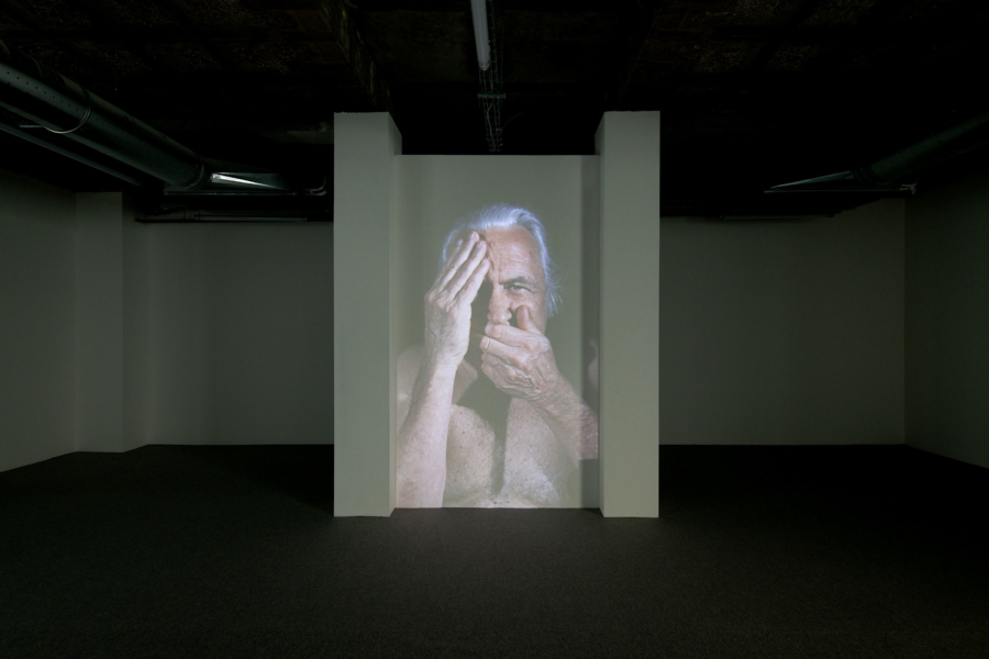 La dimensión vertical mínima es de 305 cm. El artista recita en tiempo real un texto reflexivo que lúdicamente se retroalimenta a sí mismo entre los valores absolutos de unos y ceros. Como aluden los movimientos de las manos.