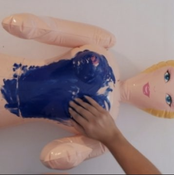 Una revisión no cronológica de obras icónicas de ‘los grandes maestros del arte’ (desde el siglo XX hasta el presente) centrada en el color azul como punto de partida para la narrativa que (literalmente) se desarrolla en un rollo de papel. Se rota/dibuja/rota sucesivamente, en un movimiento de mise en abîme que materialmente reproduce el loop inmaterial de la imagen. La construcción de imágenes icónicas (e irónicas) se realiza inicialmente con las herramientas tradicionales del dibujo y la pintura, reemplazadas luego por objetos domésticos/íntimos, culminando en una sugerente masturbación. El bucle remodela el significado de las acciones y los objetos. El efecto de espejo entre el bucle y su reflejo subraya la repetición (sistemática) de una tendencia (sistémica) en momentos significativos de transición en el arte occidental, señalando la constante en las convenciones reemplazadas y sustituidas. La página vuelve siempre en blanco: lista para ser reescrita.