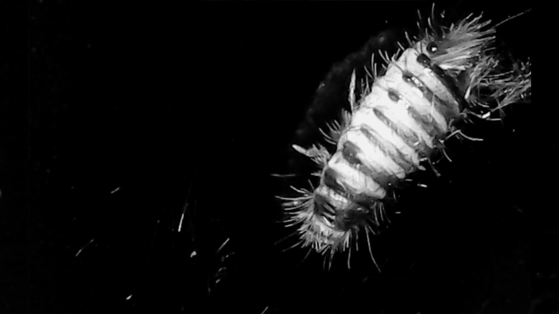 Like a single film frame, insects flash for the fraction of a second, only to immediately withdraw from the field of vision again. In between their flickering body fragments, the film shows undefinable voids. What can be seen when familiar filters of vision and the narratives associated with them are missing?